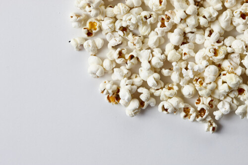 وجبات خفيفه من الفشار علي خلفية بيضاء