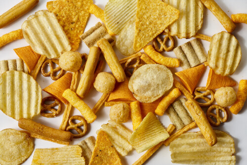 وجبات خفيفه متنوعة علي خلفية خلفية بيضاء