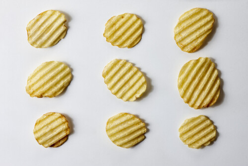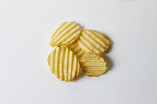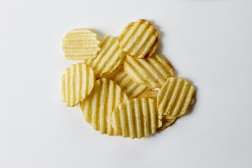 وجبات خفيفة من رقائق البطاطس الشيبس على خلفية بيضاء