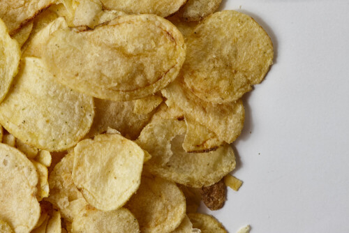 وجبات خفيفة من رقائق البطاطس الشيبس على خلفية بيضاء