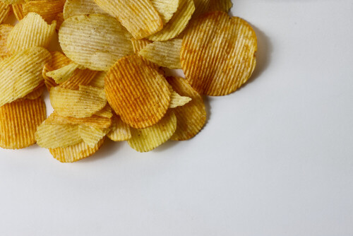 وجبات خفيفة من رقائق البطاطس الشيبس على خلفية بيضاء