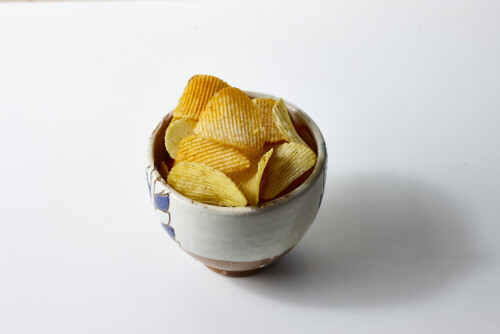 وجبات خفيفة من رقائق البطاطس الشيبس على خلفية بيضاء