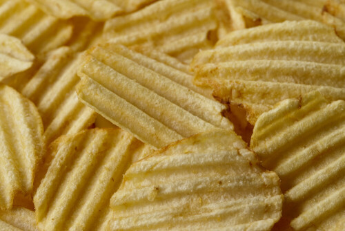 وجبات خفيفة من رقائق البطاطس الشيبس على خلفية بيضاء