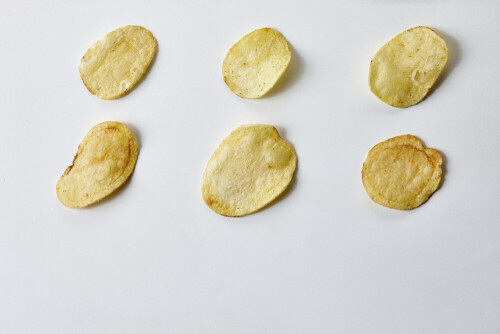 وجبات خفيفة من رقائق البطاطس الشيبس على خلفية بيضاء
