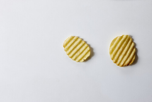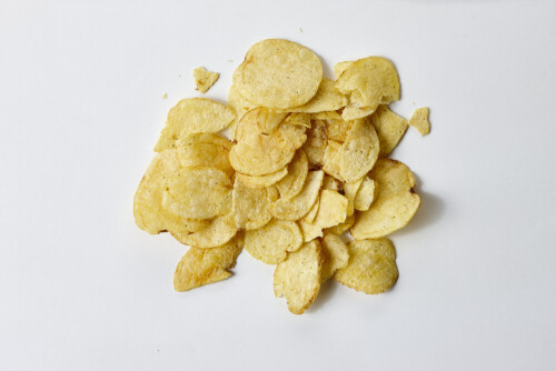 وجبات خفيفة من رقائق البطاطس الشيبس على خلفية بيضاء
