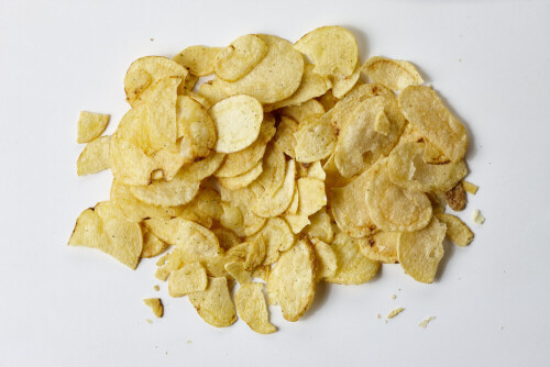 وجبات خفيفة من رقائق البطاطس الشيبس على خلفية بيضاء