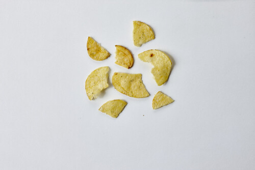 وجبات خفيفة من رقائق البطاطس الشيبس على خلفية بيضاء
