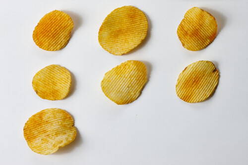 وجبات خفيفة من رقائق البطاطس الشيبس على خلفية بيضاء