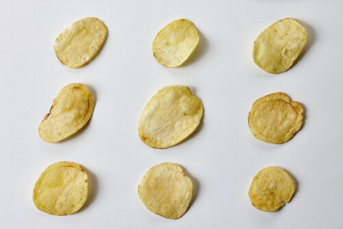 وجبات خفيفة من رقائق البطاطس الشيبس على خلفية بيضاء