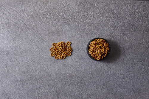 وجبات خفيفة متنوعة في أوعية فخارية على خلفية رمادية