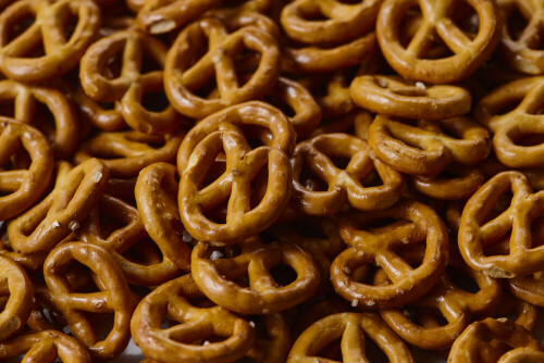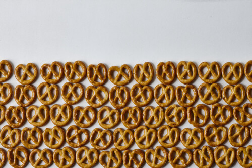وجبات خفيفة من البريتزل على خلفية بيضاء