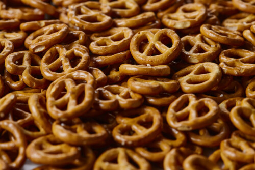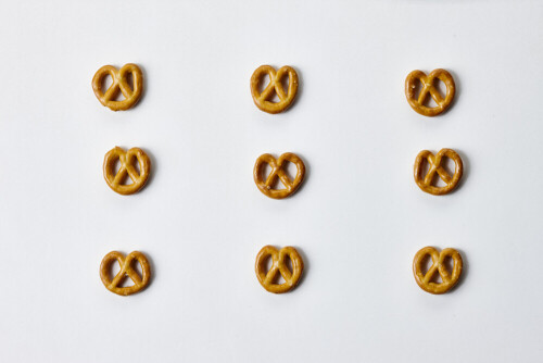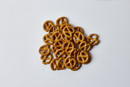 وجبات خفيفة من البريتزل على خلفية بيضاء