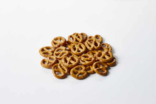 وجبات خفيفة من البريتزل على خلفية بيضاء