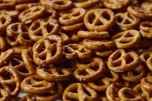 وجبات خفيفة من البريتزل على خلفية بيضاء