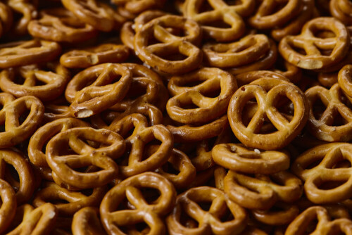 وجبات خفيفة من البريتزل على خلفية بيضاء