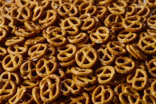 وجبات خفيفة من البريتزل على خلفية بيضاء