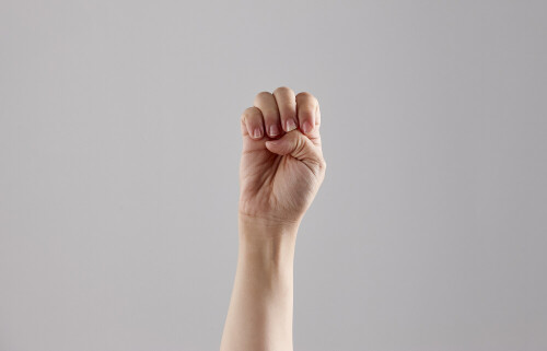 امرأة تشير بيديها بلغة الإشارات المختلفة