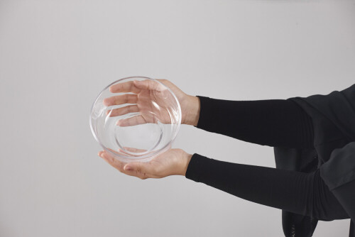 امرأة ترتدي عباءة سوداء تحمل أدوات زجاجية مختلفة في أوضاع متعددة