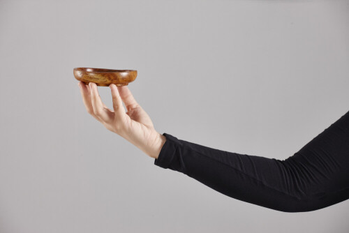 امرأة ترتدي عباءة سوداء تحمل أدوات خشبية مختلفة في أوضاع متعددة