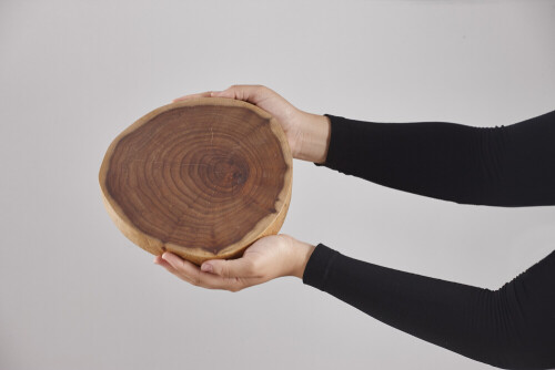 امرأة ترتدي عباءة سوداء تحمل أدوات خشبية مختلفة في أوضاع متعددة
