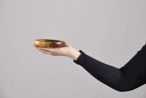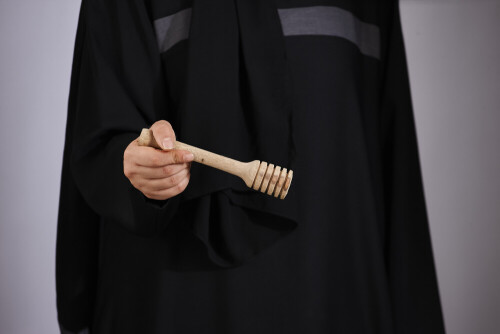 امرأة ترتدي عباءة سوداء تحمل أدوات خشبية مختلفة في أوضاع متعددة