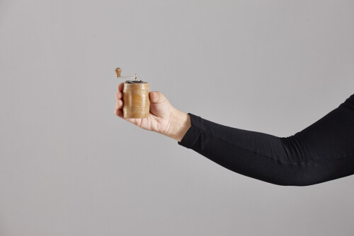 امرأة ترتدي عباءة سوداء تحمل أدوات خشبية مختلفة في أوضاع متعددة