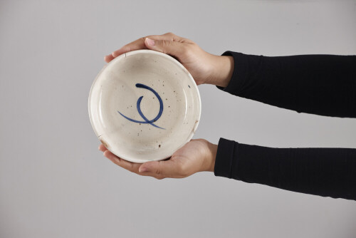 امرأة ترتدي عباءة سوداء تحمل أدوات فخارية مختلفة في أوضاع متعددة