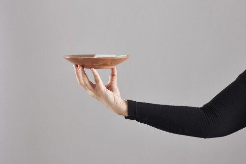 امرأة ترتدي عباءة سوداء تحمل أدوات فخارية مختلفة في أوضاع متعددة