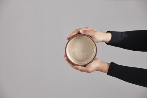 امرأة ترتدي عباءة سوداء تحمل أدوات فخارية مختلفة في أوضاع متعددة