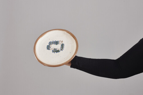 امرأة ترتدي عباءة سوداء تحمل أدوات فخارية مختلفة في أوضاع متعددة
