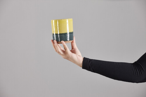 امرأة ترتدي عباءة سوداء تحمل أدوات فخارية مختلفة في أوضاع متعددة