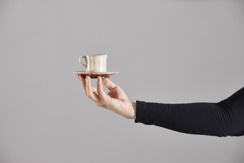 امرأة ترتدي عباءة سوداء تحمل أدوات فخارية مختلفة في أوضاع متعددة