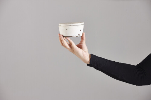 امرأة ترتدي عباءة سوداء تحمل أدوات فخارية مختلفة في أوضاع متعددة