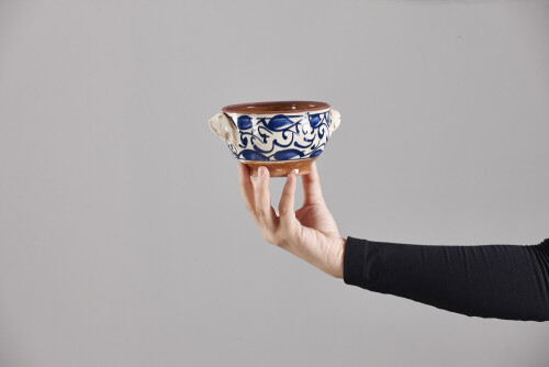 امرأة ترتدي عباءة سوداء تحمل أدوات فخارية مختلفة في أوضاع متعددة