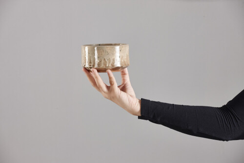 امرأة ترتدي عباءة سوداء تحمل أدوات فخارية مختلفة في أوضاع متعددة