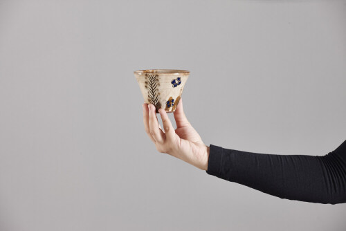امرأة ترتدي عباءة سوداء تحمل أدوات فخارية مختلفة في أوضاع متعددة