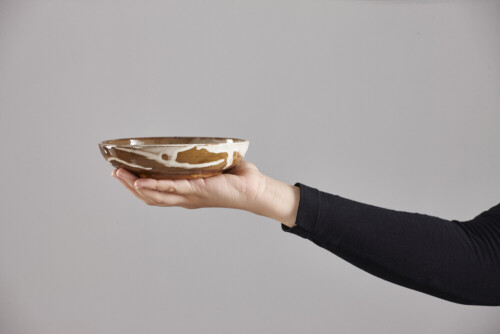 امرأة ترتدي عباءة سوداء تحمل أدوات فخارية مختلفة في أوضاع متعددة