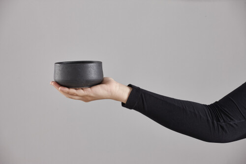 امرأة ترتدي عباءة سوداء تحمل أدوات فخارية مختلفة في أوضاع متعددة