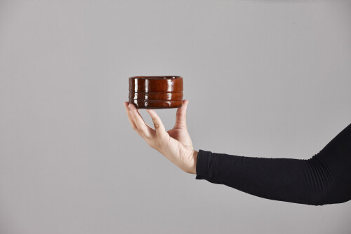 امرأة ترتدي عباءة سوداء تحمل أدوات فخارية مختلفة في أوضاع متعددة