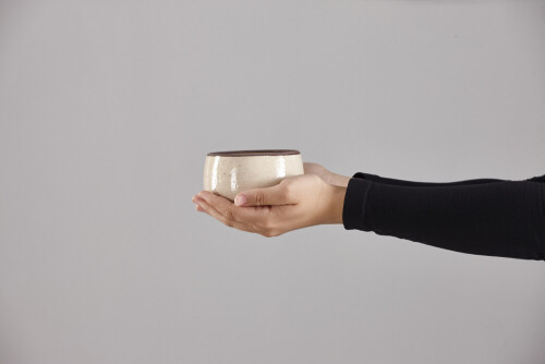 امرأة ترتدي عباءة سوداء تحمل أدوات فخارية مختلفة في أوضاع متعددة
