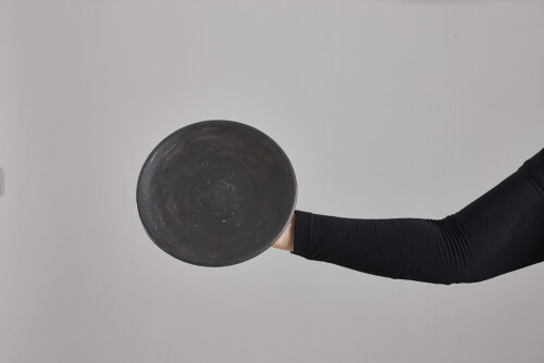 A woman in black abaya holding different pottery essentials in different positions