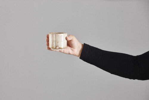 A woman in black abaya holding different pottery essentials in different positions