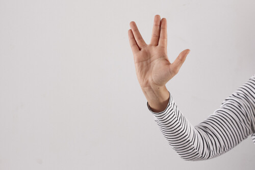 A Saudi woman having a call in a blue background wearing offwhite Abaya Hijab