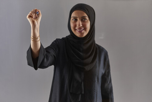 رجل سعودي يحمل علمين صغيره للمملكة العربية السعودية