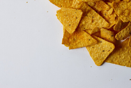وجبات خفيفة من الناتشوز على خلفية بيضاء