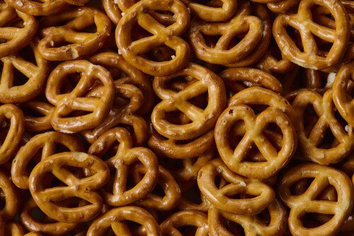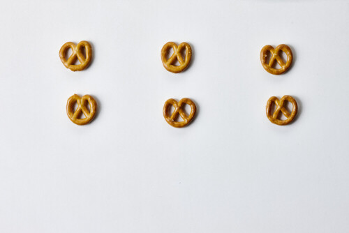 وجبات خفيفة من البريتزل على خلفية بيضاء