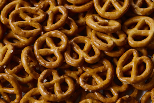 وجبات خفيفة من البريتزل على خلفية بيضاء