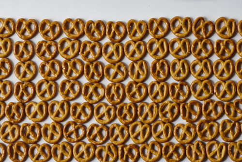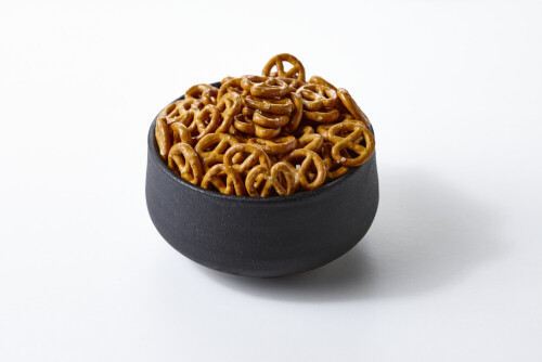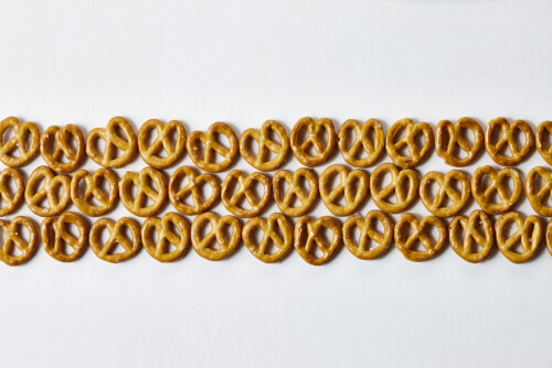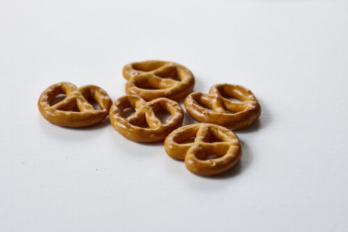 وجبات خفيفة من البريتزل على خلفية بيضاء