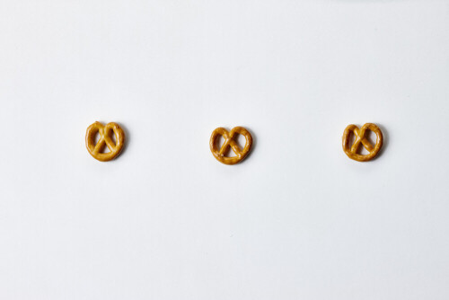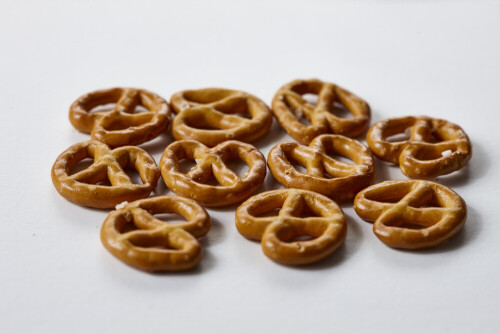 وجبات خفيفة من البريتزل على خلفية بيضاء
