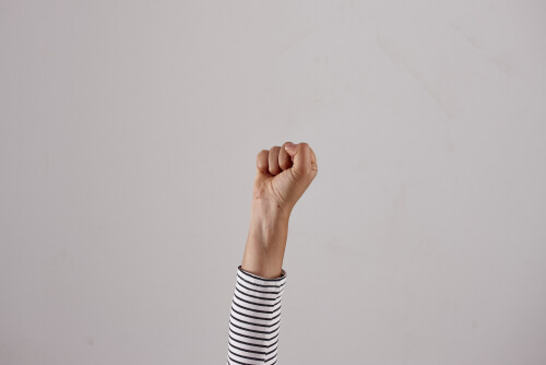 امرأة تشير بيديها بلغة الإشارات المختلفة